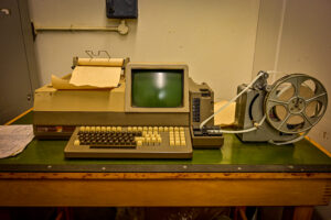 Up to 80 ft below the Essex Countryside lies the heart of the bunker. It is on this first level that the main communication, military, and plant equipment is situated. It was thought this level was safest from attack. As you walk out of the entrance tunnel through the 1.5 tonne blast doors into the bunker, the first rooms you come across all deal with communication.